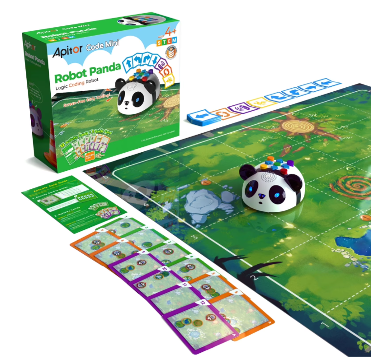Robot Panda is a completely screen-free coding robot designed to introduce young children to foundational programming concepts through hands-on interaction. Instead of using apps or tablets, kids create sequences using physical coding cards that the robot scans and executes.