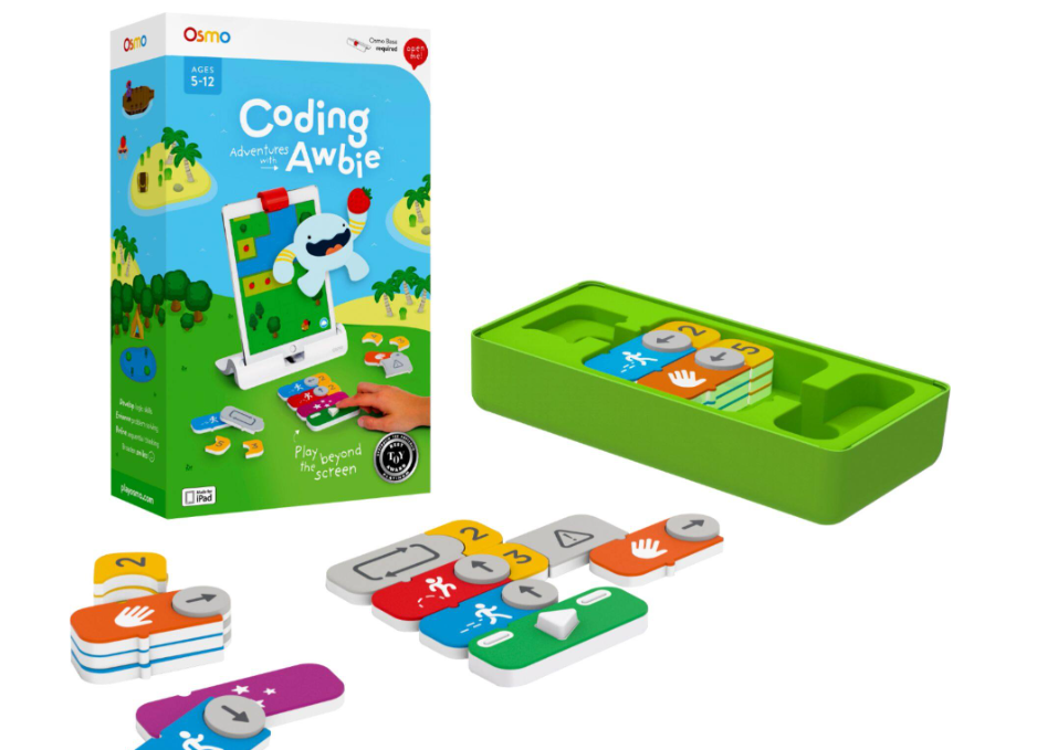 Osmo Coding Awbie blends physical coding blocks with limited screen interaction. Kids snap blocks together to move an on-screen character, learning logic, sequencing, and problem-solving through tactile play. This hybrid approach reduces screen time while maintaining immediate visual feedback, bridging the gap between unplugged and digital coding.